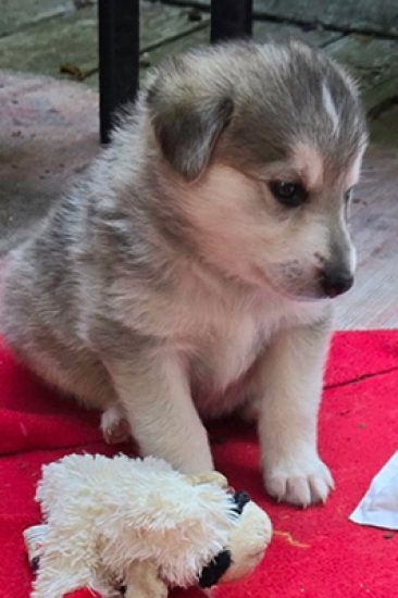 HISTORY: Born in foster care to Dumpling, a sweet Shepherd/Elkhound mix, Delilah is the female counterpart to her big brother Ka Chonk. With her plush grey coat and confident spirit, she stands out in the pack.