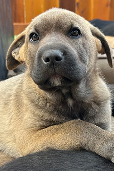 Hildegard BREED: Malinois/Sharpe GENDER: Female AGE: 2 months SIZE/WEIGHT: Medium TEMPERAMENT: Excitable, curious. PERSONALITY: Loving, playful. BEST MATCH: Active, loving home ready to train and cherish a puppy for life. FAVORITE THINGS: Exploring, playing.