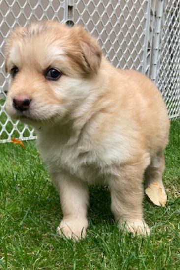 He spends a lot of time outside on the grass where he likes to cruise around and is really starting to run. He is more the inquisitive brother and is getting a little braver every day. He will explore the yard but often finds himself wandering back to the safety of the pen. He loves to curl up with his brother whether it’s inside their box or in a corner, cuddled up in a puppy pile. Play hard, nap hard is his motto.