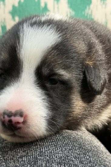 HISTORY: Zoro was born in foster care to Dumpling, a sweet Shepherd/Elkhound mix. His signature zigzag streak of white inspired his name, and his bold personality has been shining ever since.